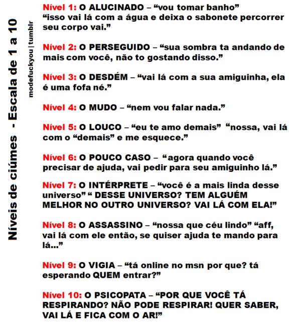 Níveis de ciúmes - Escala de 0 a 10... qual é o seu????